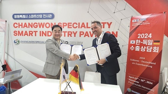 경남 창원시가 지난 22일부터 26일까지 지역 혁신기업 4개 사와 함께 참가한 독일 'HANNOVER MESSE 2024'에서 약 9천만 불 규모의 수출 상담 및 계약 성과를 거둬 세계시장에서 지역 선도기업의 기술력을 널리 알렸다.