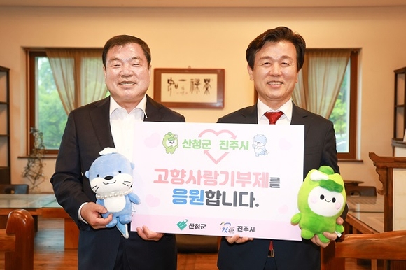 산청-진주 상생발전 일환으로 추진한 이번 상호 기부는 지난 29일 산청에서 개최한 산청-진주 상생발전 간담회에서 진행됐다.