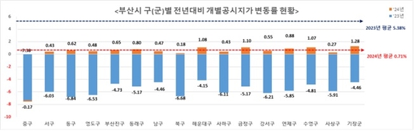 반면, 중구(-0.17%)는 부산시에서 유일하게 전년 대비 개별공시지가 변동률이 하락했다.