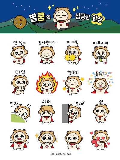 경남 합천군은 대표 캐릭터 '별쿵'을 활용한 카카오톡 이모티콘을 제작해 무료 배포한다고 2일 밝혔다.