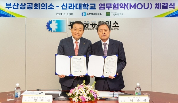 부산상공회의소가 2일 부산상의 8층 회의실에서 신라대학교와 상호협력 체계 구축을 위한 업무협약식을 개최했다고 밝혔다.