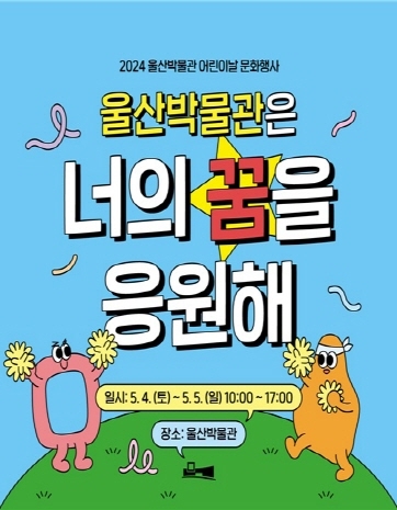 울산박물관은 어린이날을 맞아 5월 4~5일 ‘울산박물관은 너의 꿈을 응원해’라는 주제로 ‘2024년 어린이날 문화행사’를 운영한다고 밝혔다.