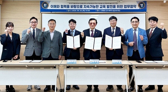 경상국립대학교 경영대학원은 지난 2일 가좌캠퍼스 경영학관 교수세미나실에서 대한민국 한식포럼, 한국ESG실천연구원과 업무협약을 맺었다고 밝혔다. 이날 협약식에는 경상국립대 정대율 경영대학원장, 대한민국 한식포럼 문웅선 회장, 한국ESG실천연구원 김경균 대표 등 10여 명이 참석했다.