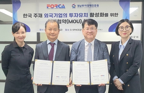 경남투자청-한국외국기업협회 투자유치 협약식 기념촬영 모습. (사진=경남도 제공)
