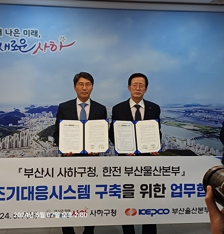 한국전력공사 부산울산본부는 7일 사하구청에서 부산 사하구와 산림자원의 보호를 위해 산불의 감시, 산불발생시 조기대응을 위한 시스템 구축과 정보 공유에 필요한 제반 협력사항을 논의하고 업무협약을 체결했다고 밝혔다.
