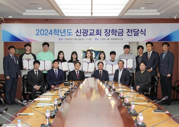 이어 이상훈 교학부총장은 “나눔과 섬김의 가치를 실천해주신 신광교회 진창설 목사님과 성도 모든 분에게 감사의 마음을 전한다”며 “학생 모두가 진취적인 학업 성과와 더불어 세상에 빛과 소금 역할을 할 훌륭한 인재로 거듭날 수 있도록 다양한 지원을 아끼지 않을 것”이라고 화답했다.