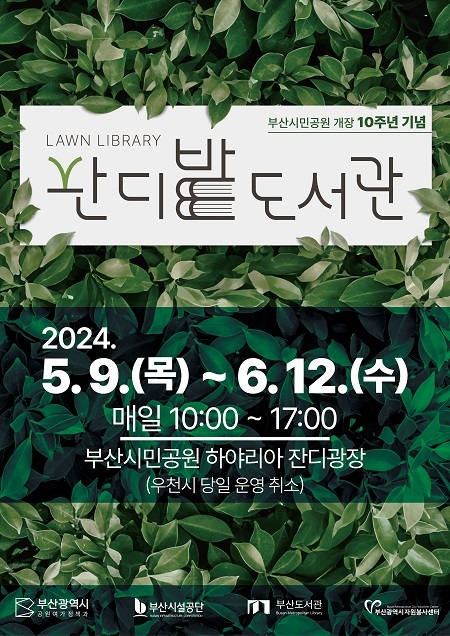부산시설공단은 9일부터 오는 6월 12일까지 35일간 ‘부산시민공원 잔디밭 도서관’을 개최한다고 밝혔다. 부산시민공원 잔디밭 도서관은 매일 오전 10시부터 오후 5시까지 운영한다..