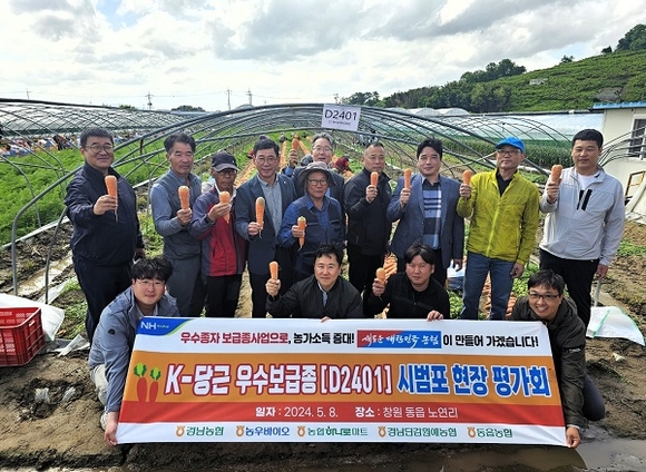 경남농협은 지난 8일 창원 당근시범포 재배단지에서 농우바이오 경남지사장, 경남농협 광역연합사업단장, 농협경제지주 농산도매국 당근 MD, 경남단감원예농협을 비롯한 경남 봄당근 주산지 농협 관계자들이 참석한 가운데 ‘당근종자 우수보급종(D2401) 지원사업 품종 현장평가회’를 개최했다고 밝혔다.