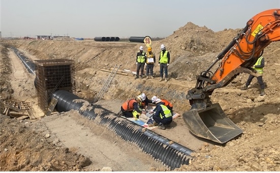 이번 모의훈련은 우수관로 부설작업을 하던 작업자가 자재 하역 시 선회하던 굴착기를 인지하지 못해 충돌하는 사고 상황을 가정해 실시했다.