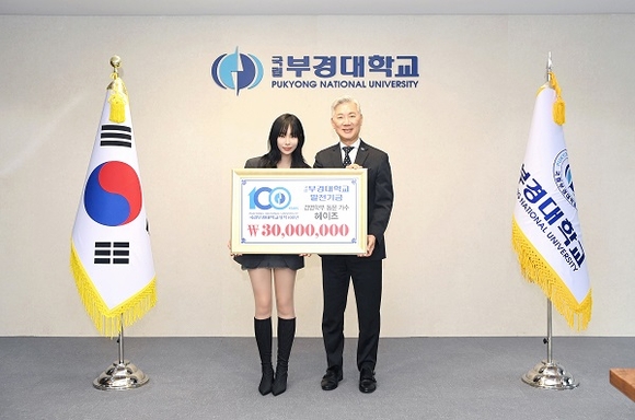 국립부경대 경영학부를 졸업한 헤이즈는 “인생에서 대학생 시절이 아직도 생생하고 좋은 추억으로 남아 있다”며 “창학 100년이라는 뜻깊은 해를 맞았다는 소식에 모교와 후배들을 응원하는 마음으로 장학금을 기부하게 됐다”고 말했다.