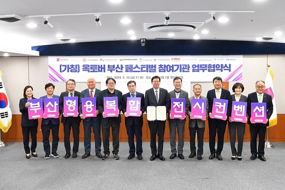 부산시가 10일 올해 개최 예정인 부산형 융복합 전시컨벤션 이벤트 ‘(가칭) 옥토버 부산페스티벌’의 성공 개최를 위한 업무협약을 11개 참여기관과 체결했다고 밝혔다.
