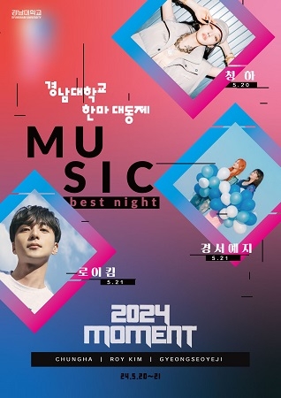 종야제인 21일은 경남대 학생들의 뛰어난 가창력을 마음껏 뽐내는 ‘경대 가요제’ 공연과 e-스포츠 대회 결선이 진행되며 저녁 9시부터는 가수 로이킴과 경서 예지의 공연으로 한마대동제의 대미를 장식한다.