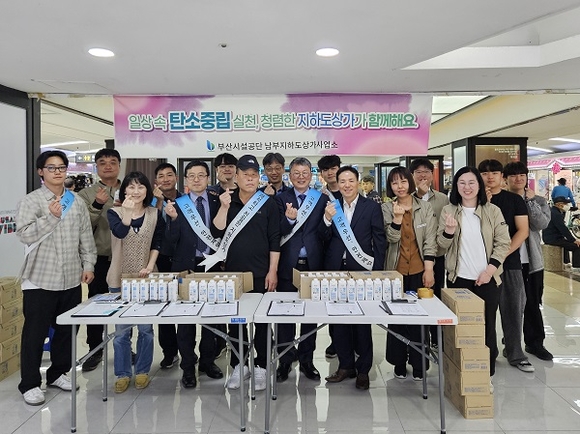 대중교통 이용 촉진과 탄소중립 실천 등을 위해 마련한 이번 캠페인에는 공단 상가처 남부지하도상가사업소, 아이쿱생협, 부산지하도상가 상인연합회 등 관계자 40여 명이 함께했다.