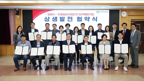 경남 창원시는 13일 시청 제3회의실에서 창원 안골일반산업단지에 입주를 확정한 기업 12개 사와 상생발전 협약을 체결했다.