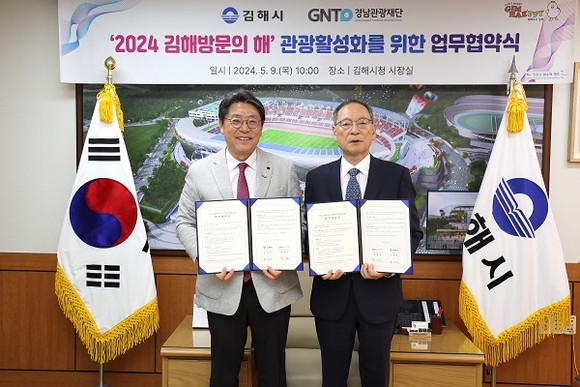 경남 김해시는 지난 9일 경남관광재단과 '2024 김해방문의 해'의 성공적인 추진과 김해관광 활성화를 위한 공동마케팅 추진에 관한 업무협약을 체결했다.