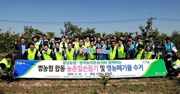 이날 경남농협은 농촌일손돕기뿐만 아니라 지난달 1일 체결한 경남도 영농폐기물 자원순환 활성화 협약에 따라 한국농어촌공사와 영농폐기물 수거 캠페인을 함께 진행했다.