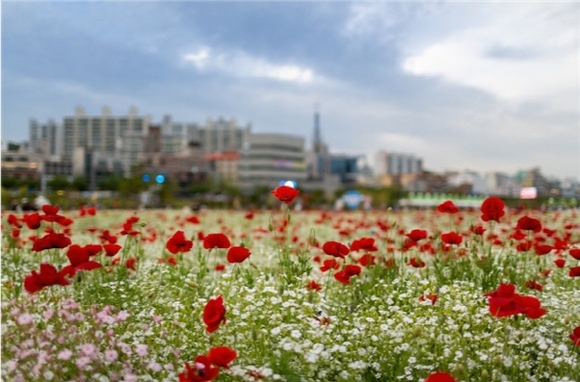 활짝 핀 꽃양귀비, 작약, 수레국화, 안개초, 금영화 등 6000만 송이 봄꽃이 관람객을 맞이한다.