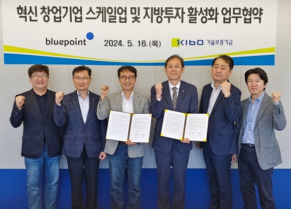기술보증기금(기보)은 엑셀러레이터 블루포인트파트너스(블루포인트)와 16일 대전 유성구 소재 블루포인트 본사에서 ‘혁신창업기업의 스케일업 및 지방투자 활성화 업무협약’을 체결했다고 밝혔다.