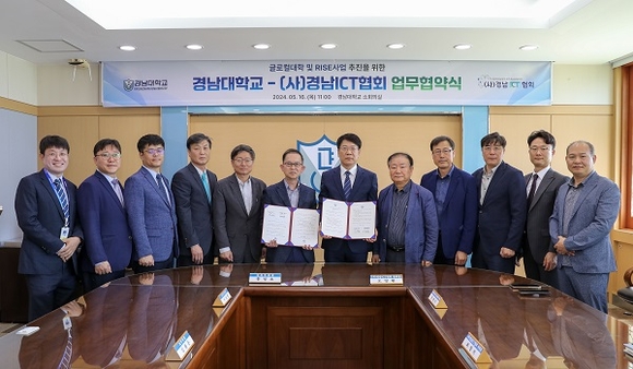 경남대는 지난 16일 오전 11시 소회의실에서 경남ICT협회와 업무협약을 맺고 교육부 글로컬대학30 사업 공동 수행을 위한 산학협력을 다졌다. 협약 중심에는 경남대의 사업 최종 선정에 대한 전방위적인 지원이 포함됐다.