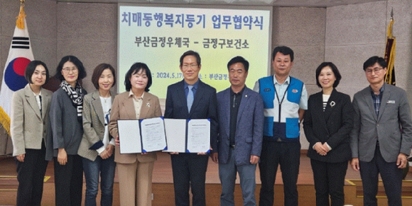 부산금정우체국과 금정구보건소는 17일 부산금정우체국 대회의실에서 돌봄사각지대 위기치매환자 발굴·지원을 위한 ‘2024년 치매동행복지등기 우편서비스 업무협약’을 체결했다고 밝혔다.