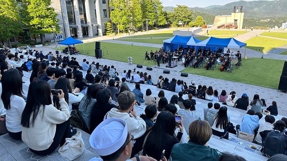 아름다운 캠퍼스를 배경으로 진행된 부산네오필하모닉오케스트라의 연주회는 소프라노 김아름, 테너 김지호의 협연으로 ‘축배의 노래’, ‘오페라의 유령’ OST 등 익숙한 클래식 음악들을 선보여 관객들에게 감동을 선사했다.