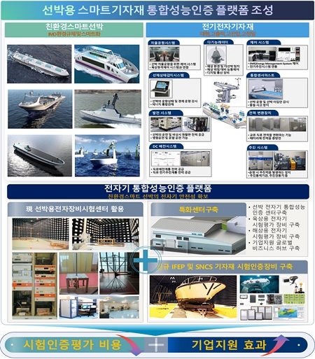 '선박용 스마트기자재 통합성능인증 플랫폼 조성사업'은 환경규제로 인한 '친환경스마트 선박의 전기전자화'라는 선박 패러다임 변화에 선제적으로 대응하고자 부산을 중심으로 선박기자재 전자기의 통합성능 인증 플랫폼을 구축해 중견·중소 기업의 기술개발, 부품 국산화, 시험인증 등을 지원하는 사업이다.