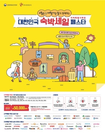 이번 행사는 국내여행 지원과 지역관광 활성화를 위해 5월 28일부터 7월 14일까지 서울 및 수도권을 제외한 지역의 숙박상품 이용객에게 할인권을 지원한다.