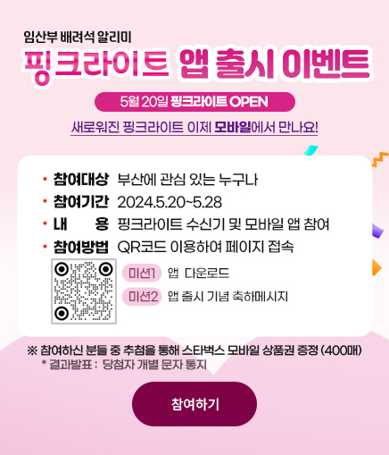 부산시, 인구보건복지협회와 함께하는 이번 캠페인은 오는 22일 14시부터 센텀시티역에서 진행된다. 많은 시민들의 관심과 참여를 유도하기 위해 ‘핑크라이트’ 모바일 앱 홍보 및 임산부 체험, 룰렛 이벤트, 포토부스 등 다양한 프로그램이 열린다.