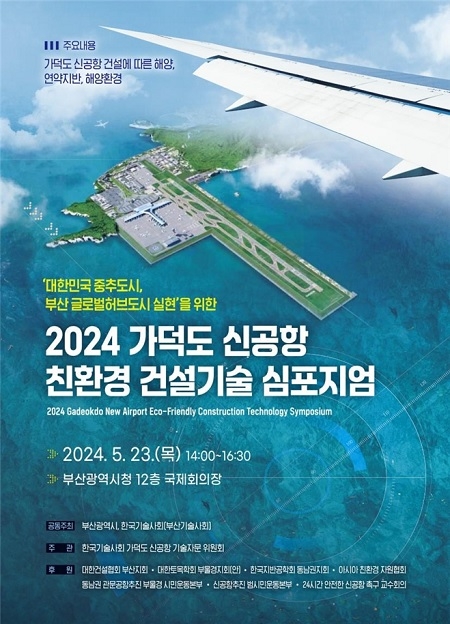 부산시가 23일 오후 오후 2시 시청 국제회의장에서 '대한민국 중추도시, 글로벌 허브도시 부산 실현'이라는 주제로 ‘가덕도신공항 친환경 건설기술 심포지엄’을 개최한다고 밝혔다.