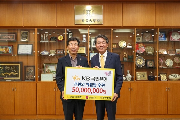 동아대학교는 KB국민은행 부산·울산·경남 지역그룹이 ‘천 원의 아침밥’ 후원금으로 5000만 원을 기부했다고 23일 밝혔다.