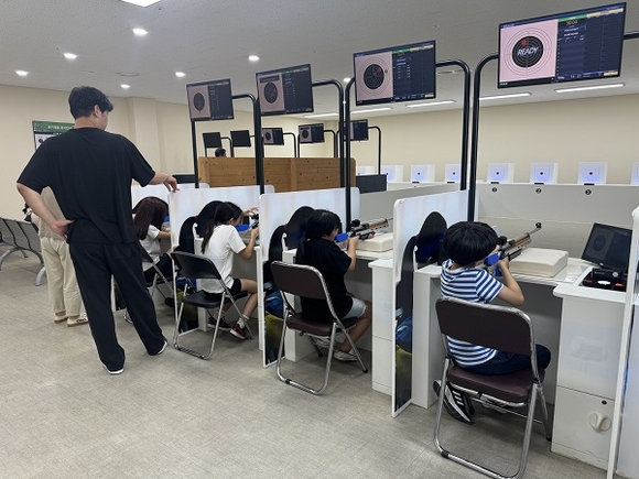 창원국제사격장은 최근 관내 2개 지역아동센터 소속 어린이 30여 명을 초청해 사격 무료체험 행사를 열었다.