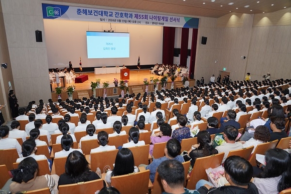 춘해보건대학교 간호학부는 23일 명덕관 아트홀에서 제55회 나이팅게일 선서식을 가졌다고 밝혔다.