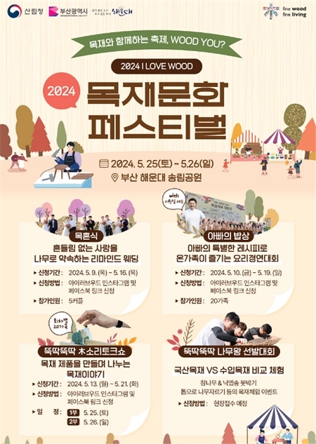부산시가 오는 25일과 26일 양일간 해운대 송림공원 일원에서 '2024 목재문화페스티벌'을 개최한다고 밝혔다.