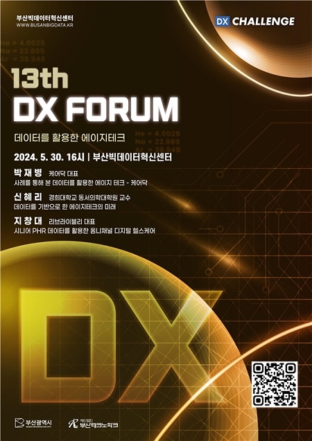 부산테크노파크(부산TP)가 오는 30일 부산빅데이터혁신센터에서 '데이터를 활용한 에이지테크'를 주제로 제13회 디지털전환(DX) 포럼을 개최한다고 밝혔다.