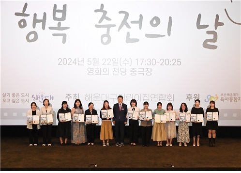 이날 행사는 김성수 해운대구청장, 김미애 국회의원, 시·구의원과 해운대구 어린이집연합회 4대 분과장을 비롯한 관내 어린이집 보육교직원 등 250여 명이 참석한 가운데 1부 시상식, 2부 영화관람 등의 순서로 진행됐다.