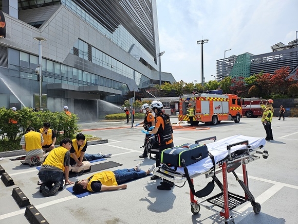 또한 울산소방본부의 안전체험관과 연계해 훈련에 참여한 직원들이 심폐소생술 실습과 이동식 완강기 체험 등을 통해 재난상황에서의 초동대응역량을 강화했다.