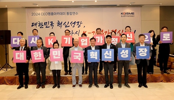 이번 ‘2024 CEO명품아카데미 통합연수’는 총 6개 지역에 소재한 연수원에서 개별 추진 중인 CEO명품아카데미 참여기업 간의 교류와 협력을 증진하는 한편 혁신적이고 사회적 책임 실천을 위한 K-기업가정신을 전국에 확산하기 위해 마련됐다. 이날 행사에는 2024년 CEO명품아카데미 참여기업 대표 150여 명과 연수를 수료한 졸업기업 대표 4명 등이 참여했다.