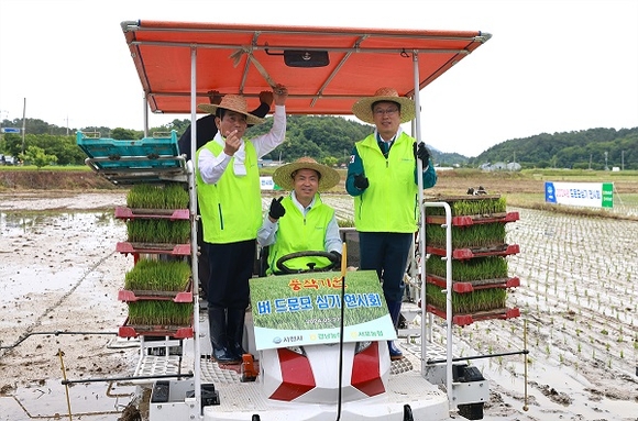 경남농협은 27일 사천시 서포면 구랑리 소재 농가에서 노동력과 생산비 절감을 위한 ‘벼 드문모 심기 연시회’를 개최했다고 밝혔다.