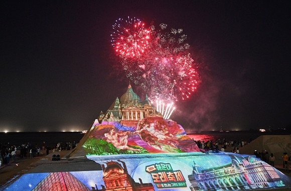 부산 해운대구는 지난 24일부터 27일까지 해운대해수욕장에서 개최되는 모래축제의 이색 즐길거리인 ‘미디어파사드’를 관광객들의 호응에 따라 이틀 연장해 29일까지 상영한다고 밝혔다. 미디어파사드는 건물 외벽을 스크린으로 활용해 다양한 영상을 투사하는 방식이다.