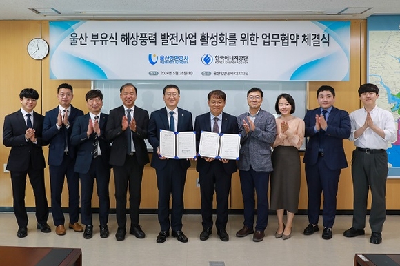 울산항만공사(UPA)는 28일 오전 공사 12층 대회의실에서 울산 부유식 해상풍력 발전사업 지원 인프라 활성화를 위한 업무협약(MOU)을 한국에너지공단(KEA)과 체결했다고 밝혔다.