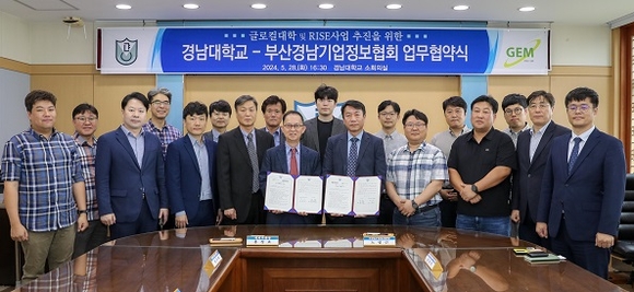 지난 28일 소회의실에서 열린 협약식에서 양 기관은 소멸 위험을 겪고 있는 지자체 재도약에 뜻을 모으면서 부산경남기업정보협회 소속 기업들의 인력난과 부족한 원천 기술력 확보에 대학이 보유한 인적·물적 인프라를 적극 활용하기로 약속했다.