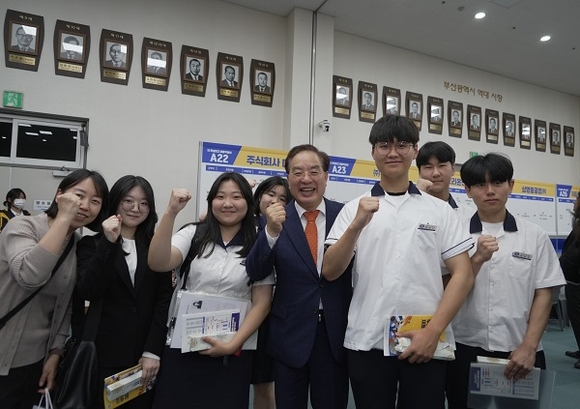 하윤수 부산시교육감이 29일 시청 1층 로비 일원 및 대회의실에서 개최된 ‘2024 부산 특성화고 채용박람회’를 찾아 참여 기업체 담당자 및 직업계고 학생·교사를 격려했다.