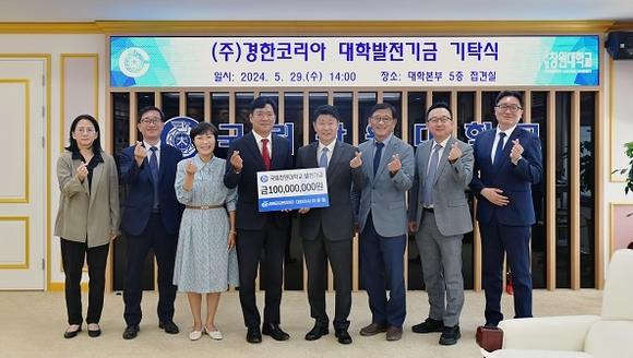 국립창원대학교는 29일 대학본부에서 박민원 총장 및 보직자가 참석한 가운데 ‘경한코리아 이준형 대표이사 대학발전기금 1억 원 기탁식’ 행사를 개최했다고 밝혔다.