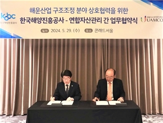 한국해양진흥공사(해진공)가 지난 29일 연합자산관리(유암코)와 콘래드 서울에서 ‘해운산업 구조조정 분야 상호협력을 위한 업무협약’을 체결했다고 밝혔다.