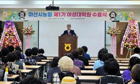 창원 마산시농협은 지난 28일 임원 및 주부대학 총회장, 대학원생 90여 명이 참석한 가운데 여성대학원 수료식을 가졌다고 30일 밝혔다.