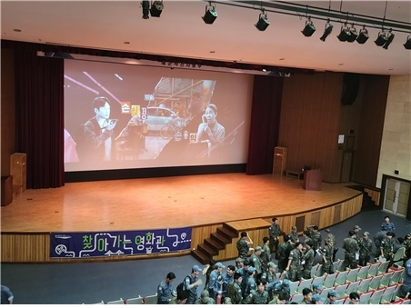 영화의전당이 주최하는 ‘찾아가는 영화관’이 지난 29일 해군작전사령부 대강당에서 열렸다. 해군 장병 600여 명이 참석한 가운데 ‘시민덕희’를 상영하며 큰 호응을 얻었다.