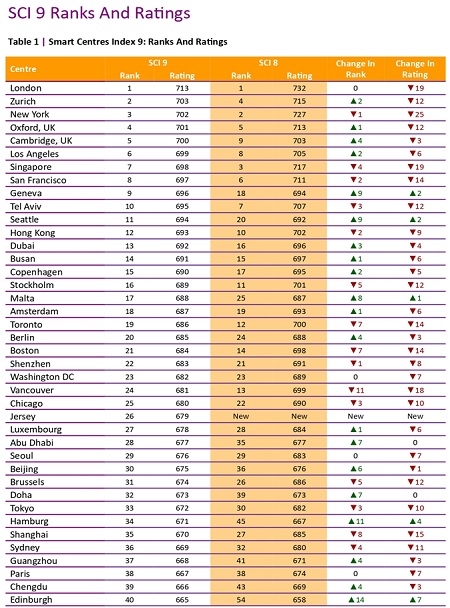 부산시는 영국의 글로벌 컨설팅 전문기관 Z/YEN사가 발표한 세계 지능형센터지수(Smart Centres Index, SCI) 9회차 평가에서 전 세계 주요 도시 79곳 가운데 14위에 올랐다고 밝혔다.