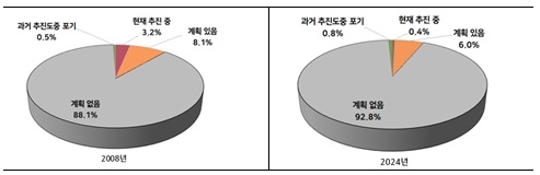 조사에 따르면 응답 기업의 93.6%가 상장 계획이 없다고 답했으며 상장 계획이 있거나 추진 중인 기업은 6.4%에 그쳤다. 이는 2008년 동일한 조사 당시의 11.3%보다도 낮은 수치를 보여주고 있다.