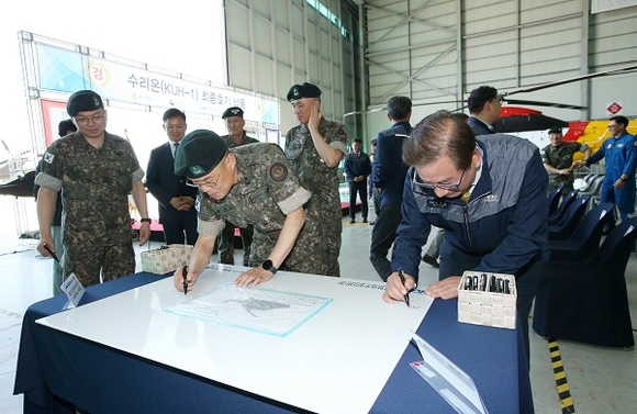 한국항공우주산업(KAI)이 지난 4일 사천 본사에서 육군 수리온(KUH-1) 양산사업 최종호기 납품 기념식을 개최했다고 밝혔다.