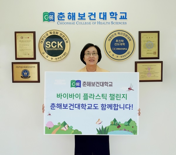 춘해보건대학교는 김희진 총장이 5일 일상 속 플라스틱 사용량을 줄이기 위한 '바이바이 플라스틱 챌린지'에 동참했다고 밝혔다.